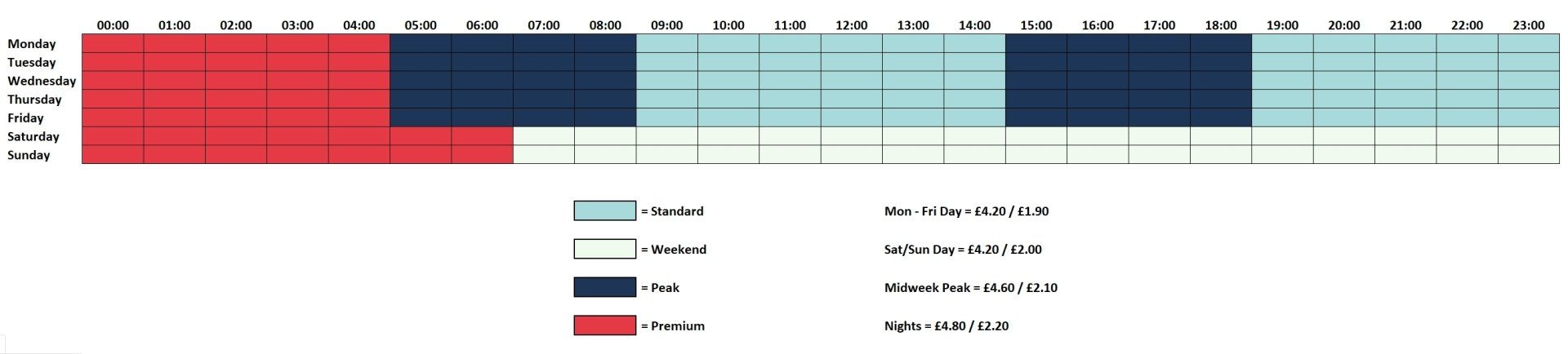 Waiting time is charged at 20p per minute, once the booking time has lapsed, after a five-minute grace window.